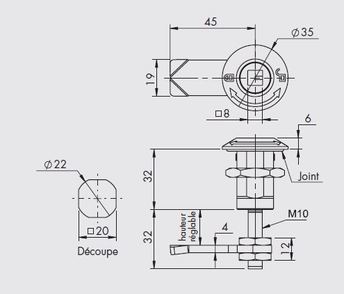 1/4 drehung - Kompressionssperre - Vierkantkopf 8mm - mit Öffnungsanzeiger